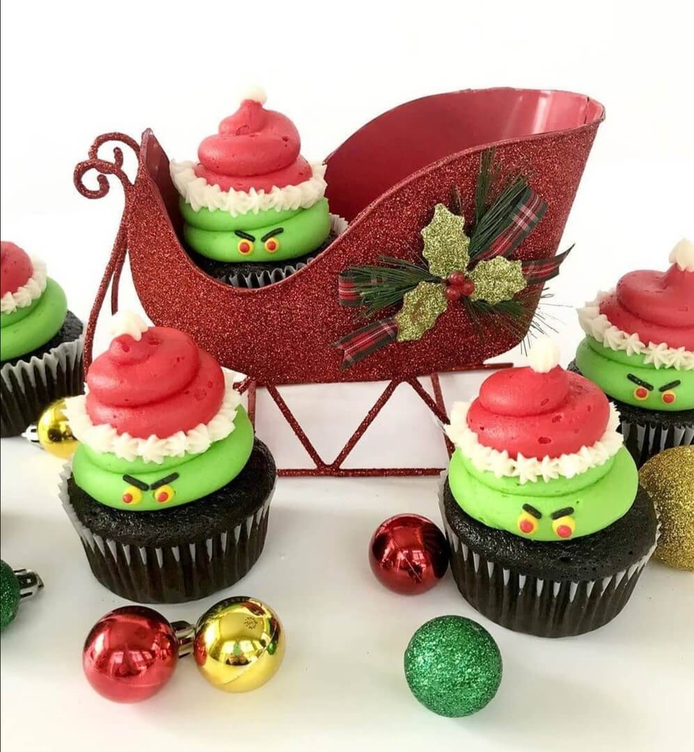 Праздничные капкейки с символичным изображением того самого Гринча, укравшего рождество...