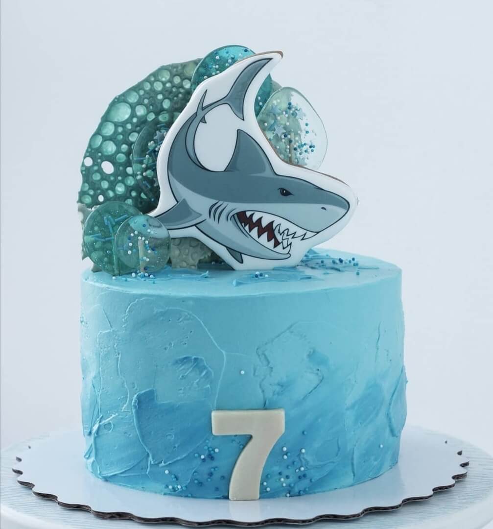 Помимо машинок и пистолетиков мальчики еще могут любить сильных и больших созданий. Акула - одна из них. Нежный тортик, украшенный волнами и, конечно же, самой главной хищницей морей!